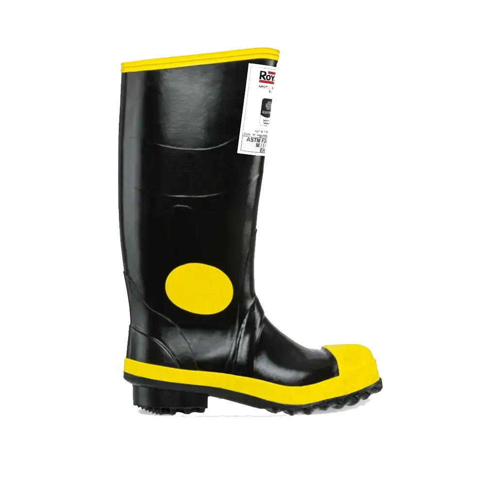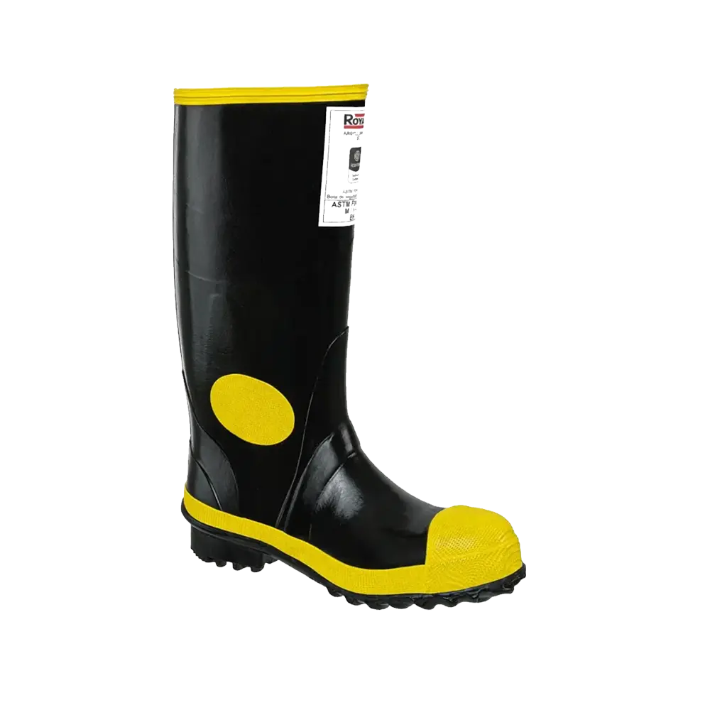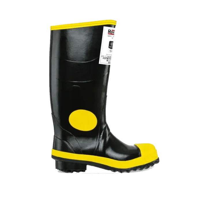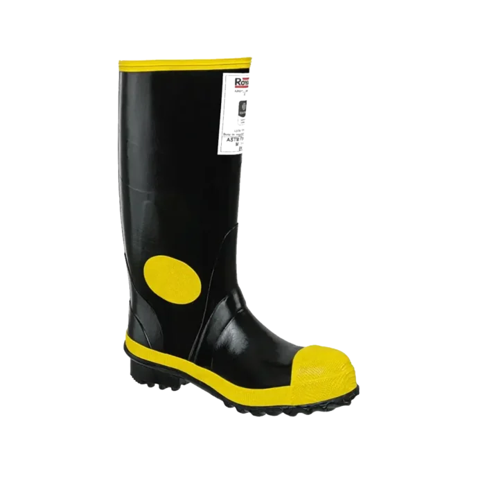 - Elaboradas en caucho natural a traves de un proceso manual combinado con vulcanización en autoclave con puntera de acero que te protegerá contra impactos, cinta amarilla distintiva, suela resistente a la abrasión con labrado de gran agarre sobre diferentes superficies.