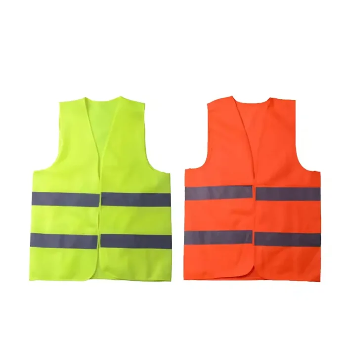 Chaleco de alta visibilidad fabricado en tejido de malla x 120 gramos, transpirable en color verde y naranja, provisto de dos bandas reflectivas horizontales. Material reflectivo en tejido gris plata de 50mm de ancho, en la parte delantera y trasera.