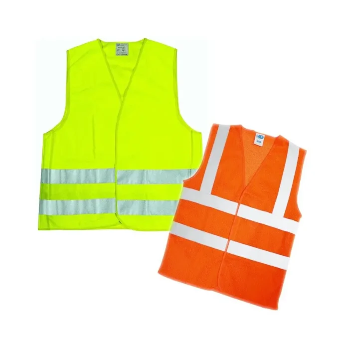 Chaleco de alta visibilidad fabricado en tejido de malla transpirable en color naranja o verde 100% poliéster. Bandas reflectivas horizontales en material reflectivo en tejido gris plata de 50mm de ancho en parte delantera y trasera. Elaborada en algodón 35% poliéster 65%. Cumple con la normativa EN-471 y ANSI 107-204 para ropa de alta visibilidad.