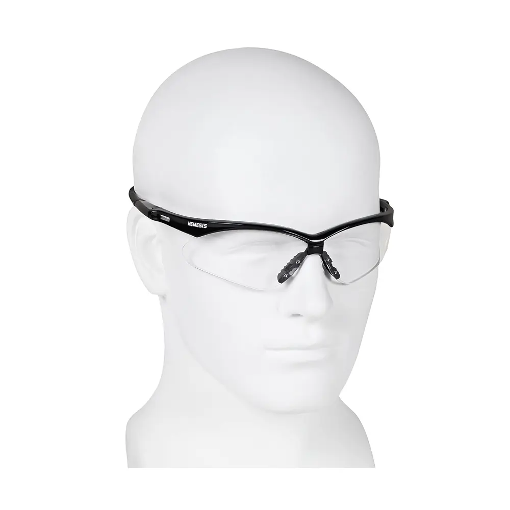 Las gafas de protección Jackson Safety* Nemesis* están fabricadas con policarbonato, el cual es un material extremadamente liviano, más fuerte y resistente a impactos que el vidrio. Este material provee una protección del 99.99% contra los rayos ultravioleta UVA/UVB y protege contra impactos.