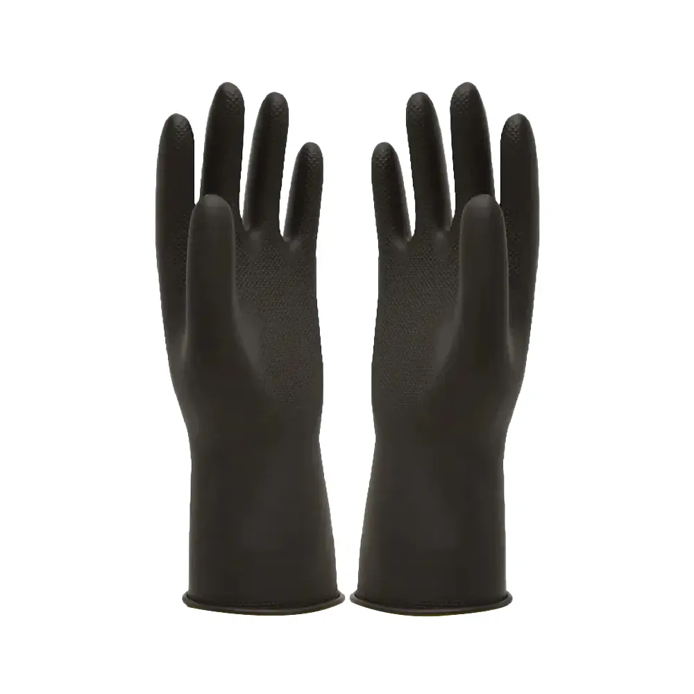 Guante Caucho Calibre 50, fabricado en caucho látex con tratamiento antibacterial, especialmente diseñados para operaciones de mantenimiento industrial y lavada. Su diseño anatómico permite una fácil postura y manipulación. Gracias al labrado en la palma y dedos; permite una mayor adherencia y mejora el agarre.