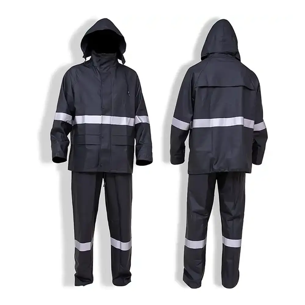 - Conjunto de impermeable de 2 piezas calibre 18 (Chaqueta y pantalon), La chaqueta contiene 2 cintas reflectivas de 2″ en espalda . Pantalon cinta reflectiva de 1″ en mangas pantalon.