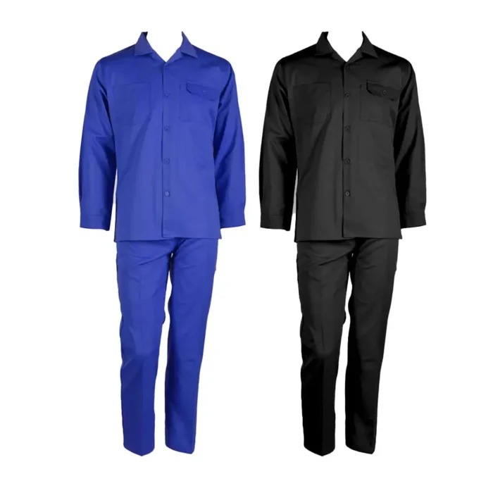 Overol de 2 piezas en dril 100%. Camisa tipo camisero manga larga con botones, pantalon con botones ,bota recta.